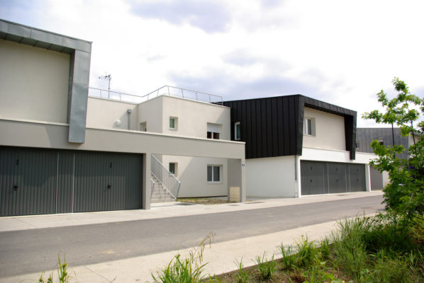 Le choix de matériaux a été effectué en termes de durabilité, d’entretien et d’esthétique (zinc, béton), tout en tenant compte de choix constructifs adaptés : soubassement des RDC en béton et élévations des niveaux en ossature bois et bardage zinc.