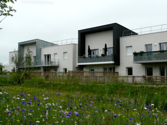 La composition volumétrique et typologique des constructions tend vers une volonté d’optimisation d’ensoleillement des logements, doublée d’une recherche de compacité constructive dans le respect de l’enveloppe budgétaire.