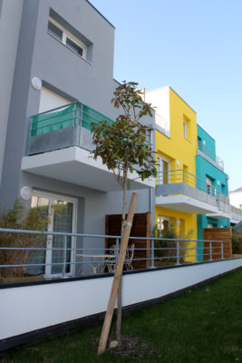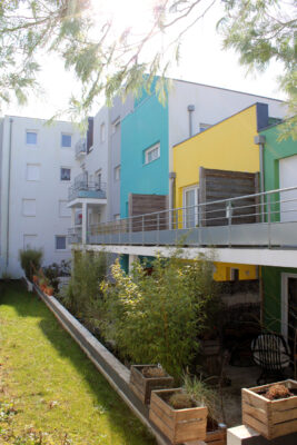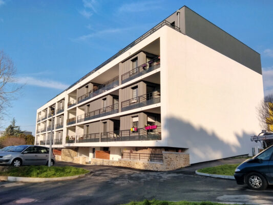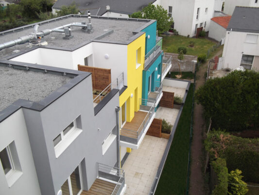 Le projet prévoit la construction de 29 logements BBC, labellisé Effinergie par PROMOTELEC. Au-delà des dispositions visant à respecter le prospect en matière de continuité urbaine, le bâtiment cherche à réduire son impact vis-à-vis de l’environnement proche. Par ce biais, nous proposons des logements intermédiaires mi maisons, mi appartements. L’objectif du dispositif architectural est d’avoir un pignon le moins large possible réduisant ainsi son impact sur le bâti voisin.